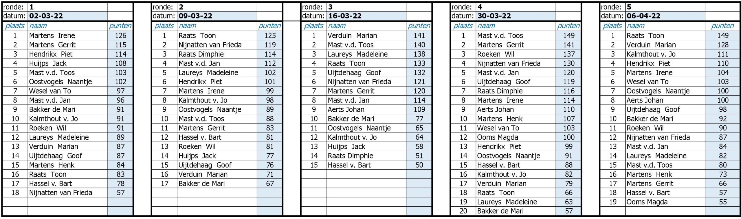 Uitslagen Rikkeizer 2022