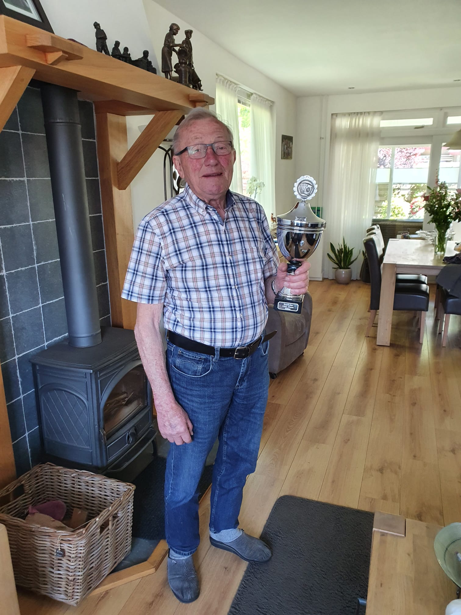 Trotse Toon Raats met zijn behaalde beker voor de 1e plaats.