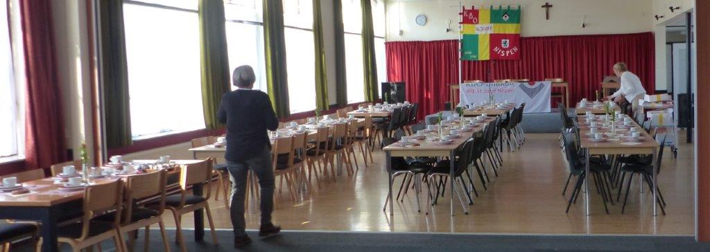 Ondertussen werd de zaal gereed gemaakt voor het ontvangst van de circa 90 leden.