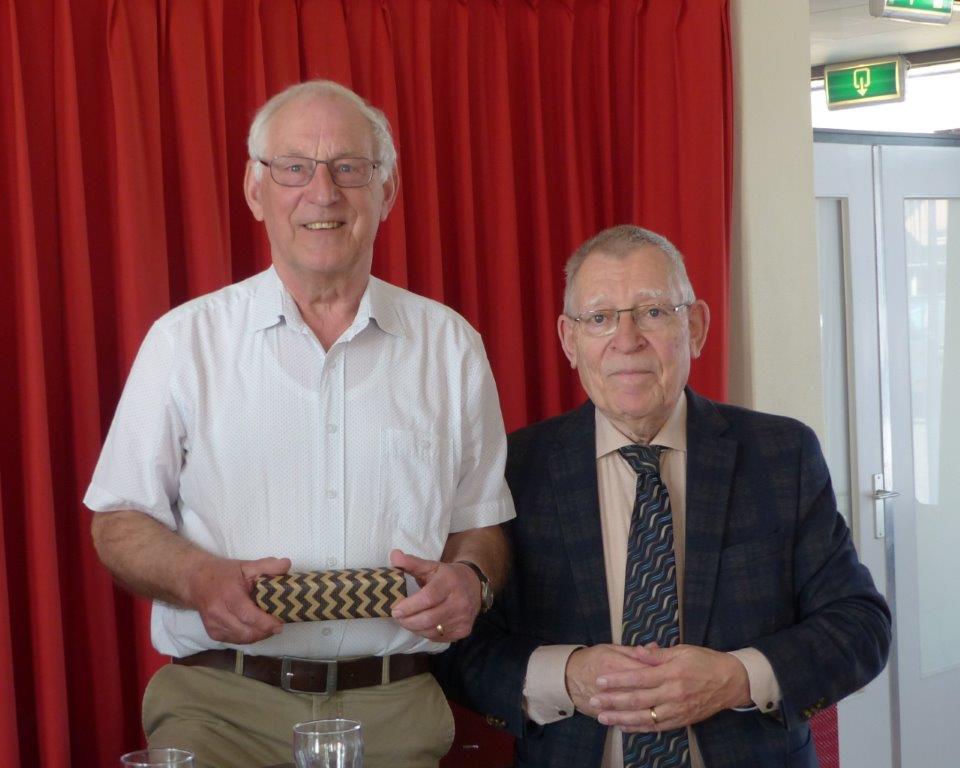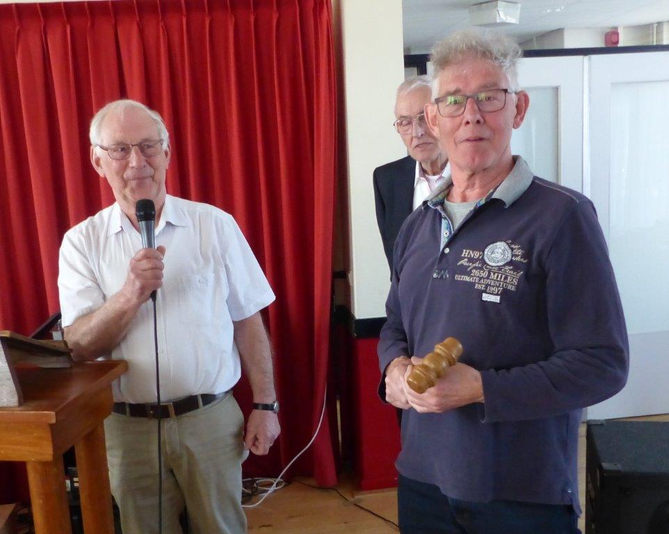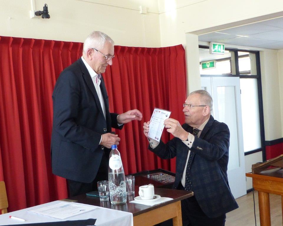 Ter afsluiting van het officiële gedeelte ontving Ad van Meir uit handen van Jac Roeken de voorzittershamer.