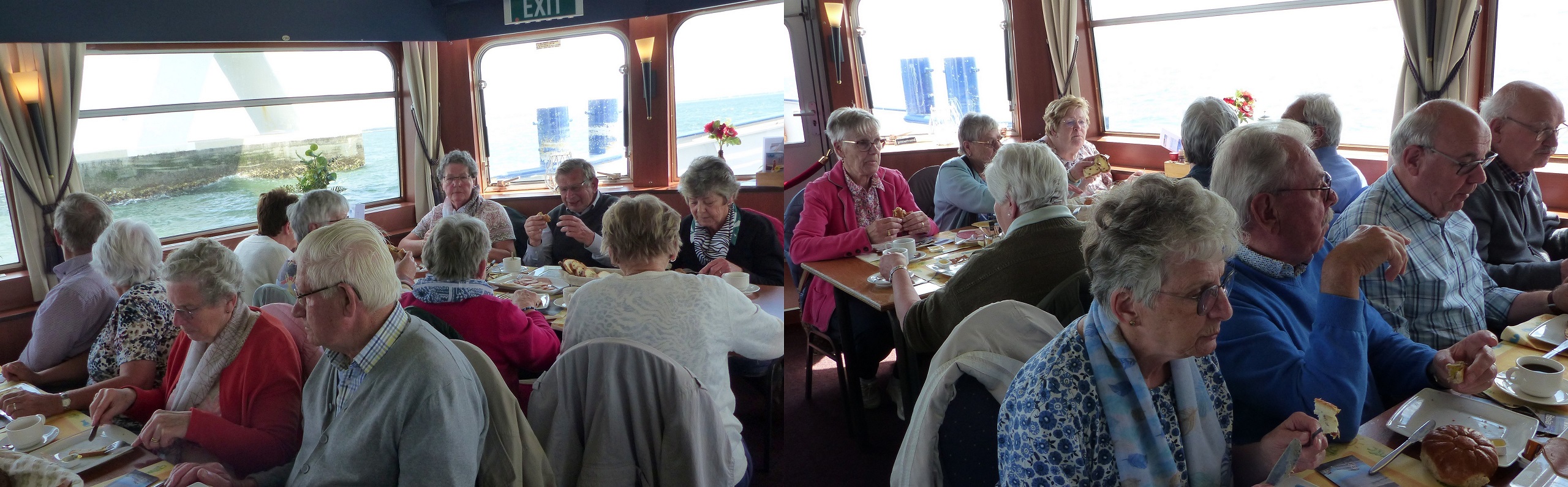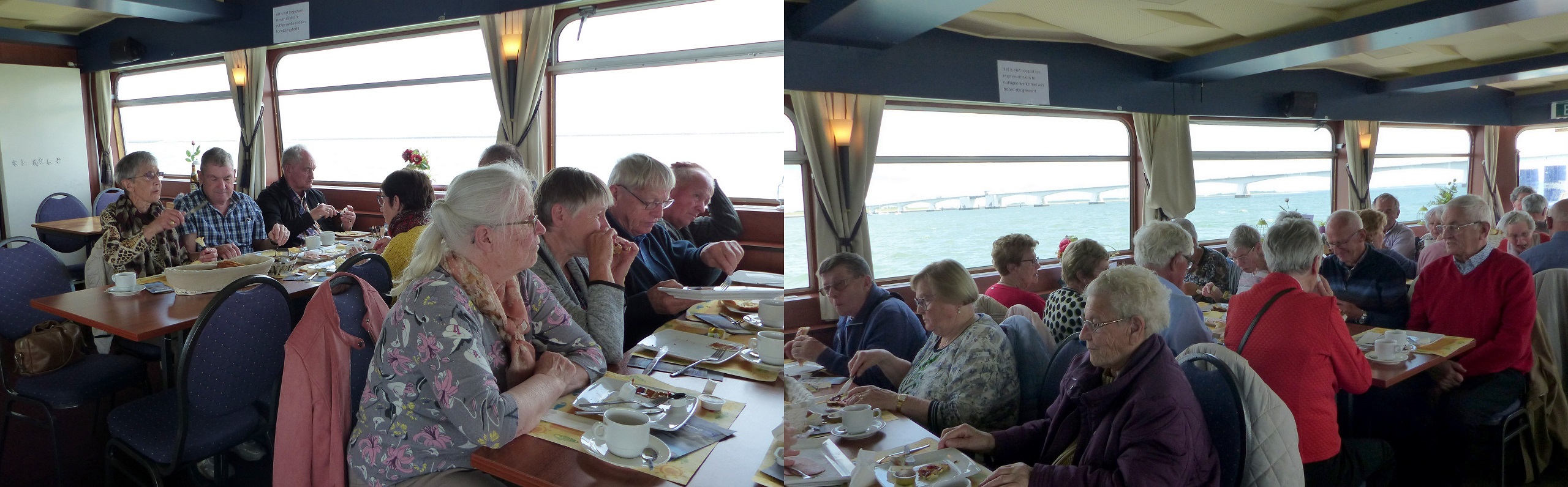 Tijdens de lunch was het genieten van het uitzicht met de zeehonden en de nog steeds imposante Zeelandbrug.