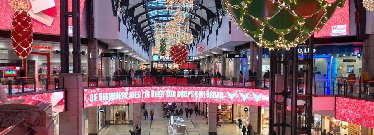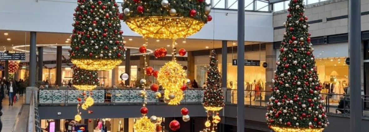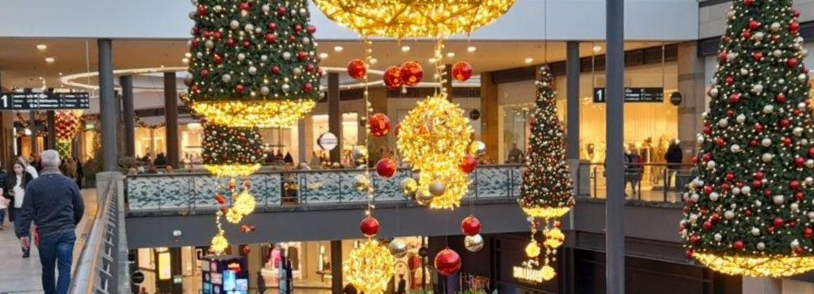 Ook het winkelcentrum was in de Kerstsfeer gestoken.
