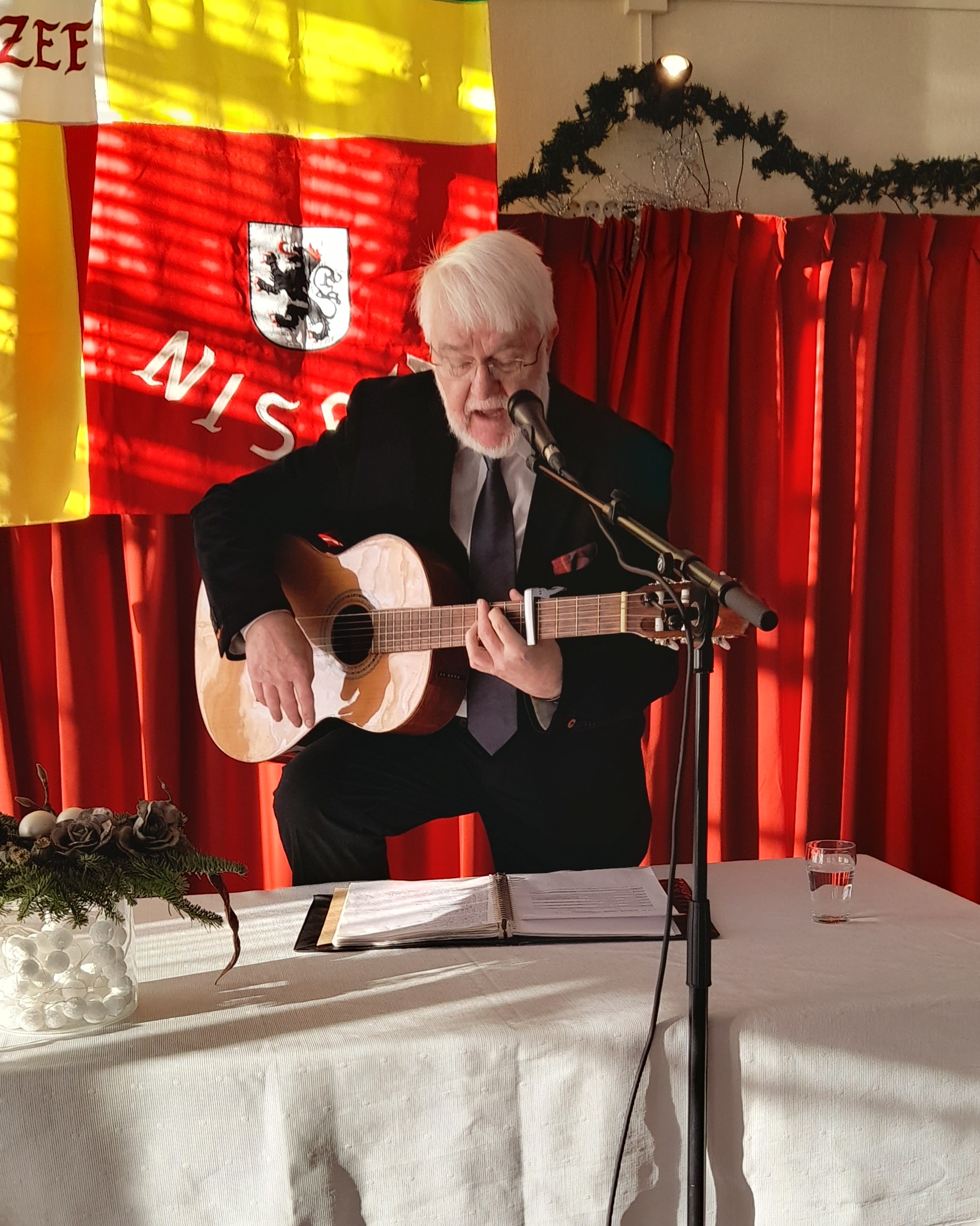 Claude Covemeker leidde, samen met zijn onafscheidelijke gitaar, de Kerstviering …