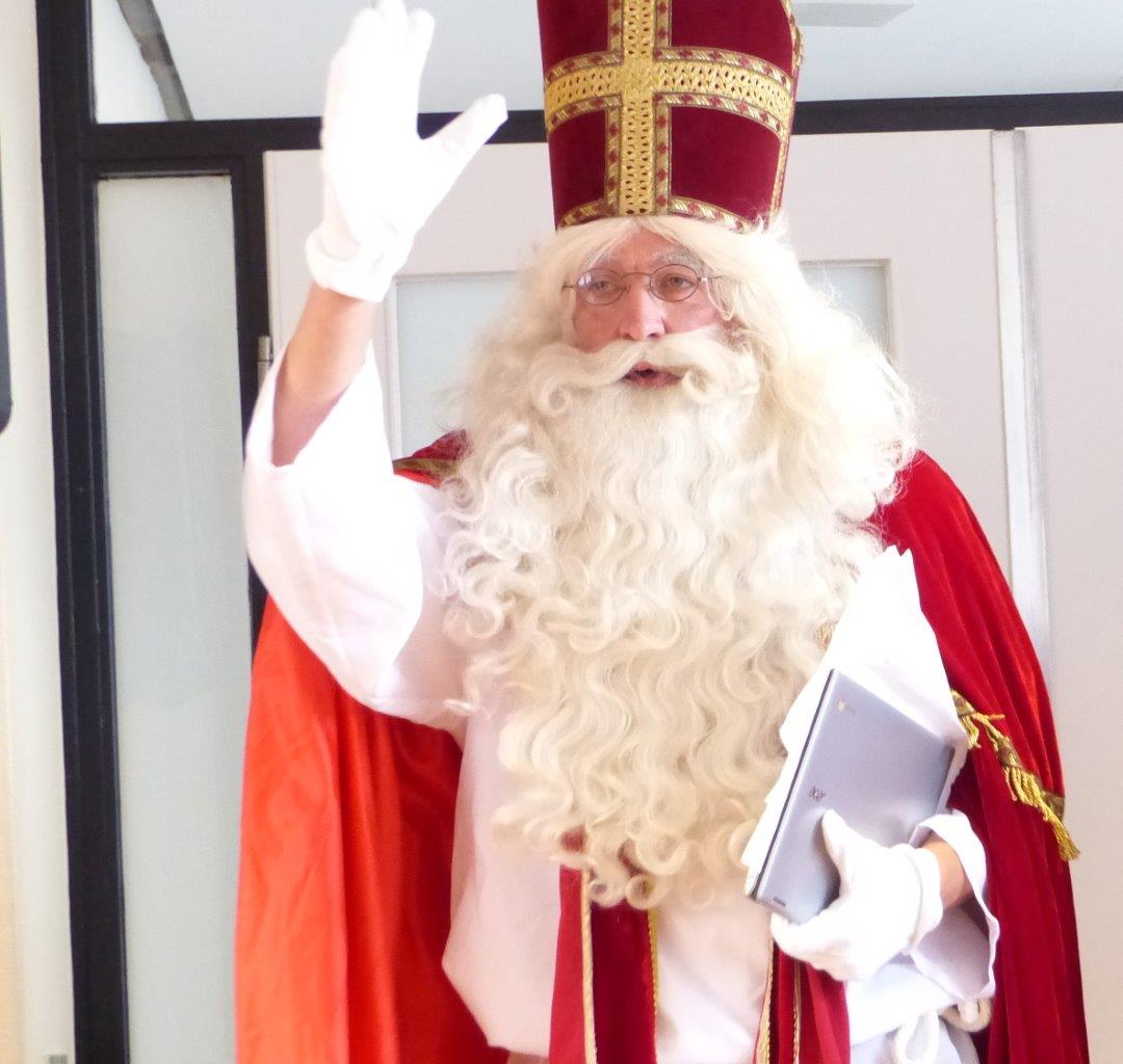 Daar is hij dan, in het traditionele Sinterklaaspak dat we allemaal kennen …