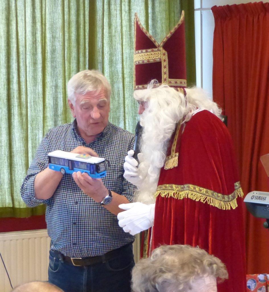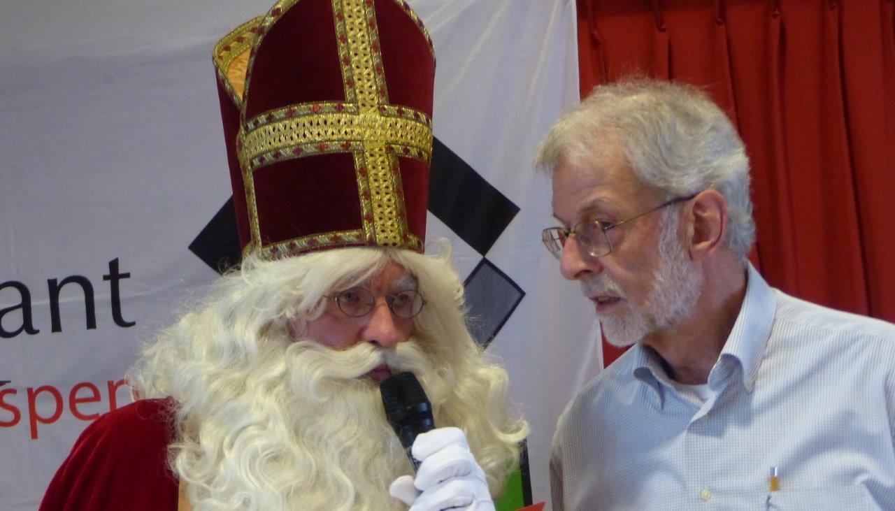 Jan Gelderblom werd door Sinterklaas nog even uitgehoord over zijn secretaris en webmaster taken bij KBO Nispen.