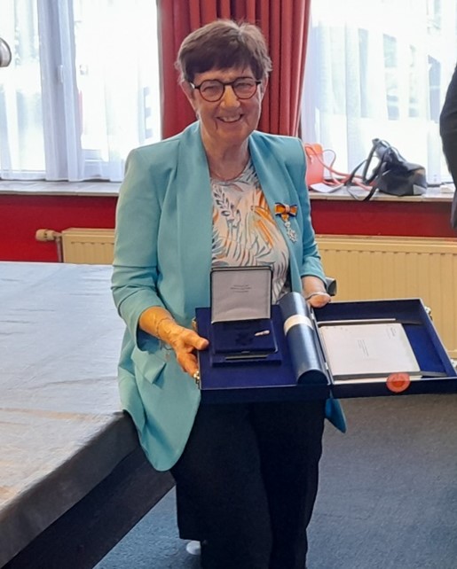 Ze kreeg uit handen van de burgemeester Han van Midden het lintje opgespeld en werd daarmee benoemd tot Lid in de Orde van Oranje-Nassau.