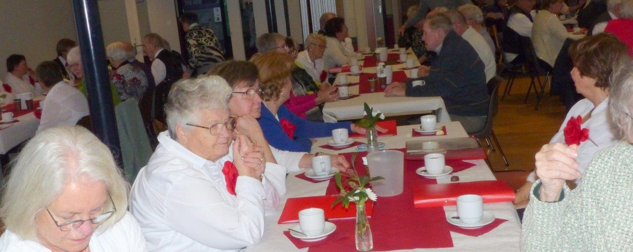 De zaal stroomde al ruim vóór 10 uur vol, de leden werden ontvangen met een kopje koffie/thee met een lekker bonbonnetje.