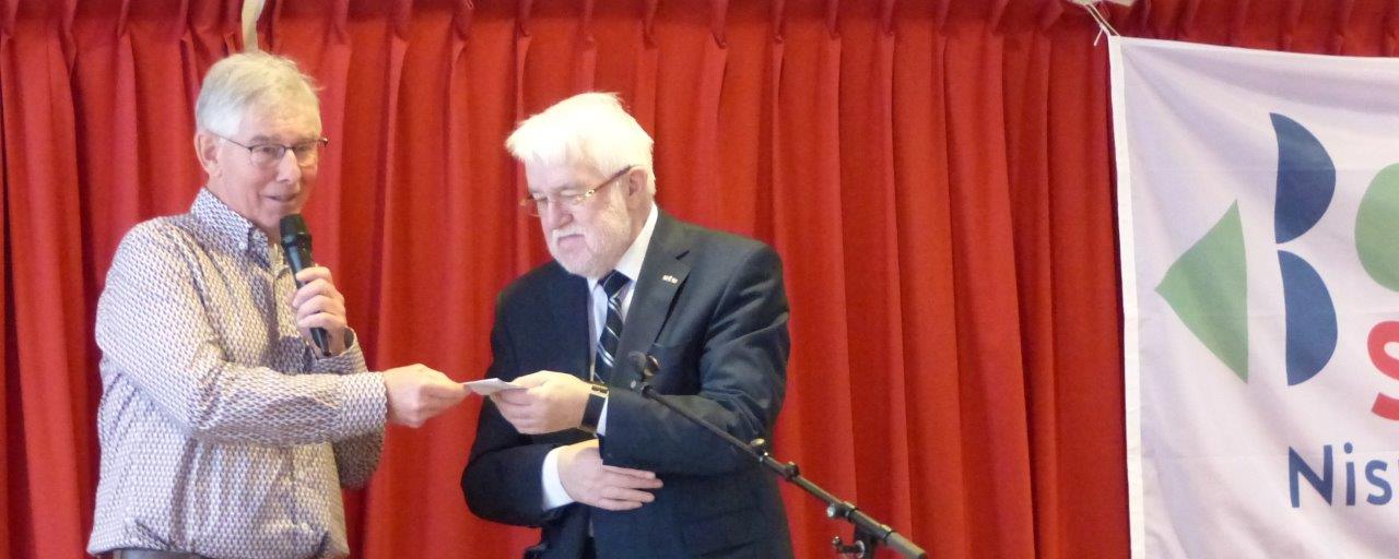 Omdat Claude Covemaeker zijn 50-jarig priesterjubileum heeft gevierd ontving hij uit handen van onze voorzitter een kleine attentie van Senioren Nispen.