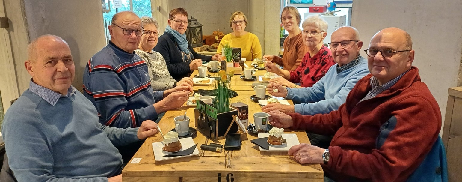 Elke woensdagochtend maakt de wandelclub een tocht met een koffiepauze. Omdat dit de feestelijke Kerst/Nieuwjaarswandeltocht was hebben de wandelaars zich naast het bakkie koffie/thee ook nog getrakteerd op een lekker gebakje.