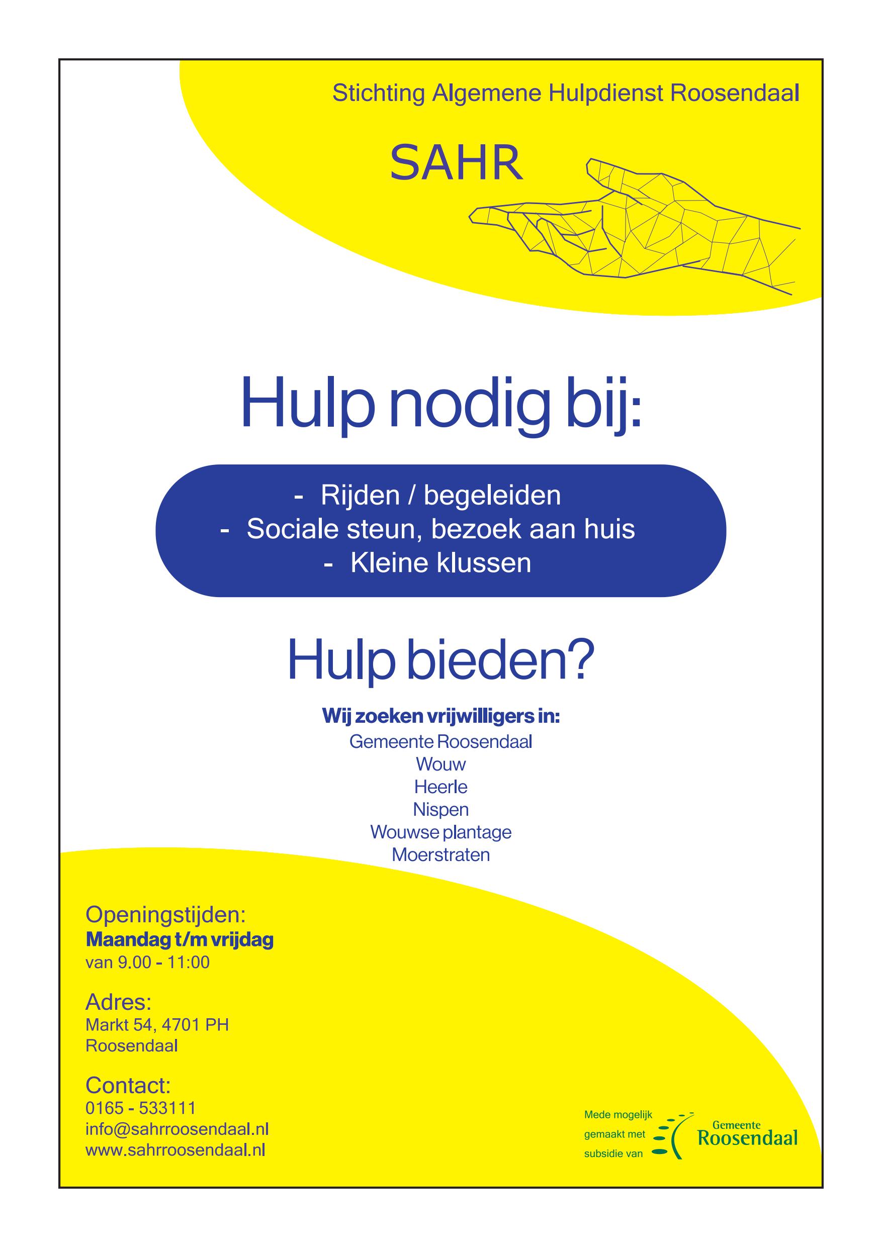 De stichting SAHR heeft net als wij altijd gebrek aan vrijwilligers die de activiteiten kunnen ondersteunen of een andere bijdrage kunnen leveren aan de stichting.
